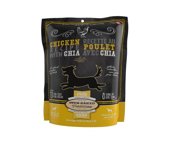 Offrez à votre chien une délicieuse gâterie sans grains naturelle au poulet et aux graines de chia. Une récompense saine et nutritive dont votre chien raffolera. Cette gâterie pour chien est lentement cuite au four, exactement comme pour nos nourritures. Nos recettes de biscuits et de gâteries pour chien sont fabriquées en petites portions pour en assurer la fraîcheur et la qualité. Aucun arôme artificiel ni agent de conservation n'est ajouté dans nos recettes de friandises gâteries pour chiens.