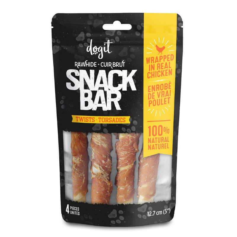 La collection Peau de bœuf naturelle Snack Bar Dogit comprend des gâteries à gruger en forme de spirale, faites de peau de bœuf naturelle enrobée de vrai poulet, pour une combinaison savoureuse à laquelle votre chien ne pourra résister!