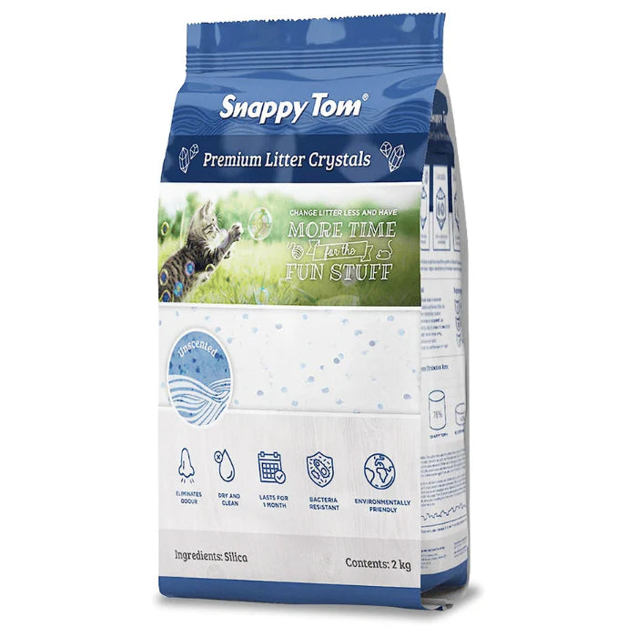 La Litière de Silice Snappy Tom élimine jusqu'à 78% les odeurs d'urine. Les cristaux qui la compose absorbent littéralement l'urine la laissant ainsi plus propre et sans odeur. Vous n'avez qu'à remuer régulièrement la litière pour optimiser l'absorption des liquides et le tour est joué! Un petit sac de Snappy Tom dure jusqu'à 1 mois lorsque vous avez un chat. Les sacs sont léger et à facile transporter contrairement aux litières conventionnelles.