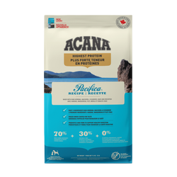 Lorsqu’il est question des mélanges ACANAMD, acana sommes résolus à choisir des ingrédients nutritifs, délicieux et riches en protéines. Notre nourriture pour chiens Plus forte teneur en protéines est parfaite pour satisfaire votre chien grâce à la quantité accrue de protéines d’origine animale que les chiens adorent. Notre mélange Pacifica est composé à 70 % d’ingrédients d’origine animale comme du hareng, du saumon, et du flet, et à 30 % de fruits et de légumes pour fournir à votre chien différentes saveurs et protéines animales. Elle contient également des prébiotiques et des fibres pour aider au maintien de la santé digestive de votre chien. Comme elle ne contient ni colorants, ni arômes, ni agents de conservation ajoutés, votre chien et vous l’adorerez. Prenez soin de votre chien en lui offrant de la nourriture riche en protéines, nutritive et délicieuse pour l’aider à vivre une vie heureuse et en santé.