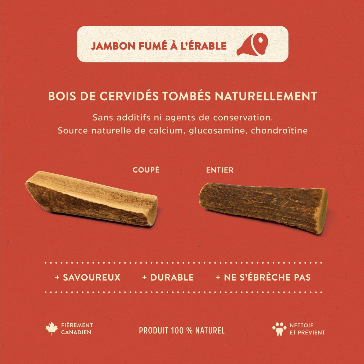 Jawgler - Bois de Cervidé à Saveur de Jambon/Érable - Coupé Split - Chien